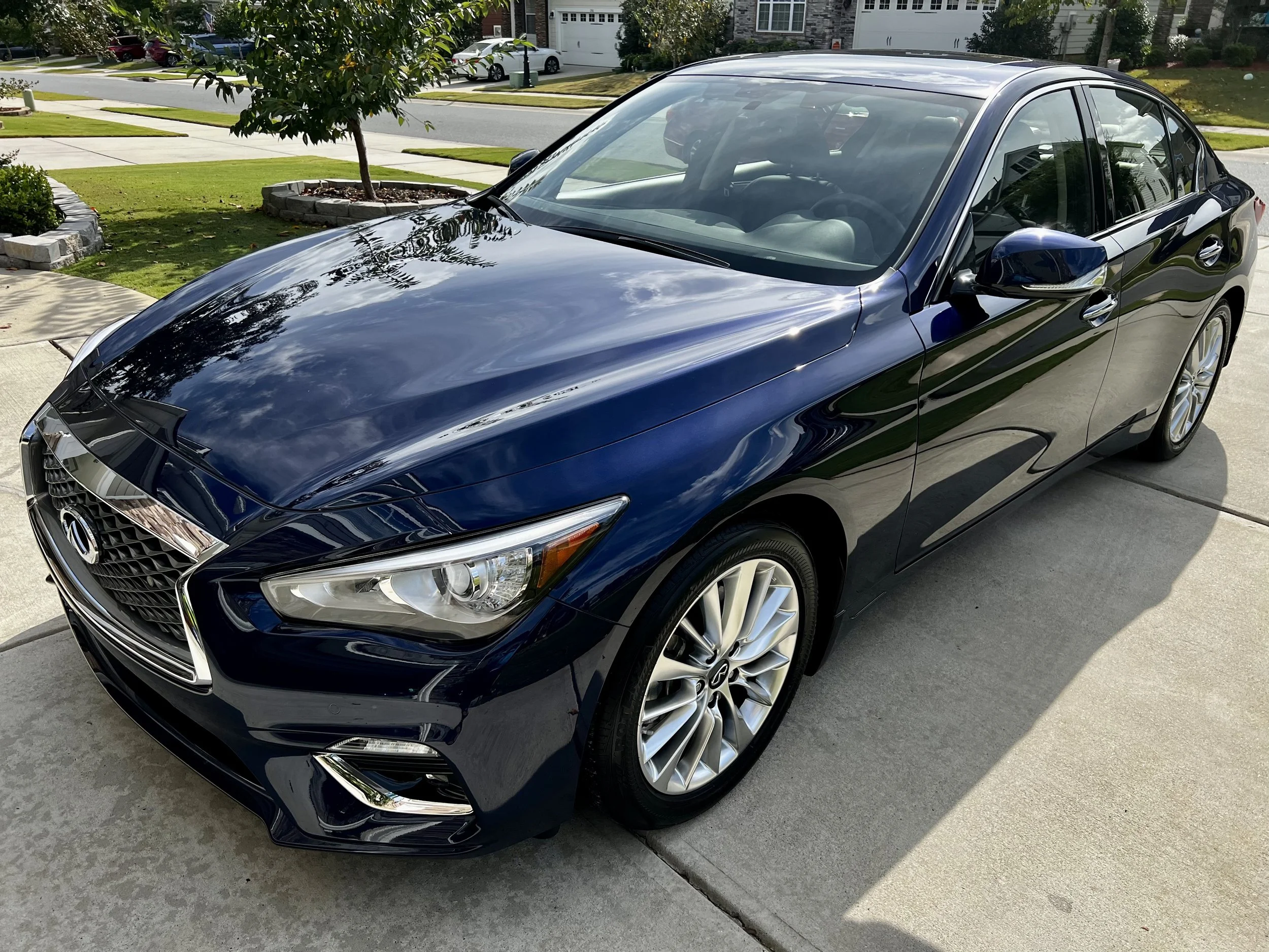 This Infiniti was another victim of automatic car washes. It had its fair share of swirls but most were alleviated with a one step polish followed up by a two year ceramic coating that further boosted the gloss. The finished product looks like it was coated with liquid glass.